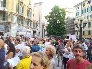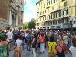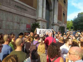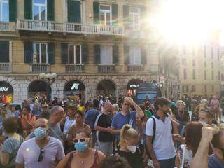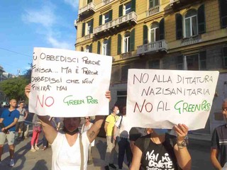Un centinaio di manifestanti, intorno alle 19 si sono ritrovati davanti alla prefettura, dove hanno protestato contro l'ipotesi che prende sempre più corpo, di istituire il green pass modello francese