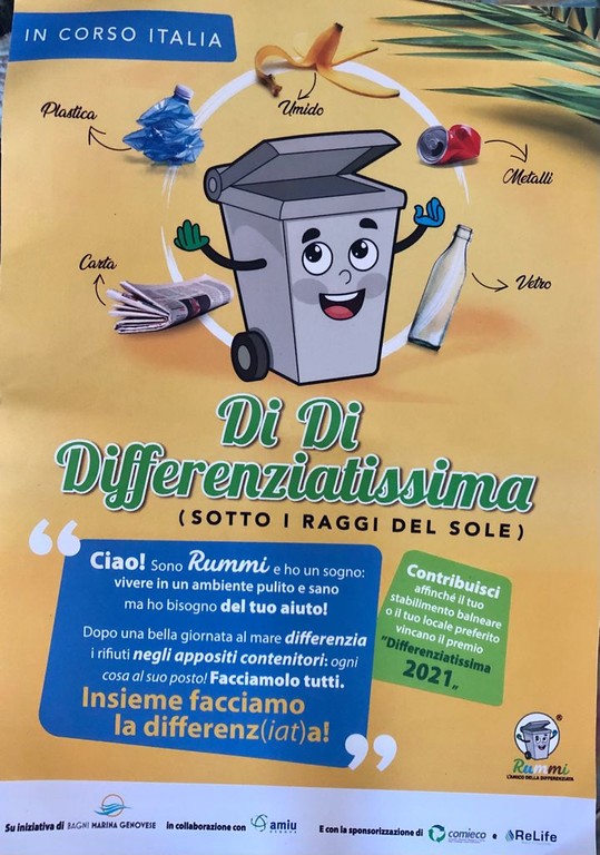 “Abbiamo quindi lavorato insieme, con il supporto della zona territoriale Levante, per approdare ad un progetto di più ampio respiro e organizzare un servizio strutturato”. Oltre il montaggio di pannelli informativi per ciascun tipo di contenitore, è nata la campagna di comunicazione ‘Differenziatissima 2021’ su iniziativa di Bagni Marina Genovese e con sponsor il consorzio Comieco e ReLife, e anche una gara ‘a punti’ che a fine stagione premierà gli esercizi più virtuosi.