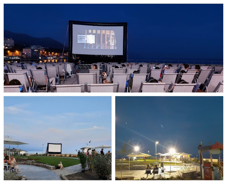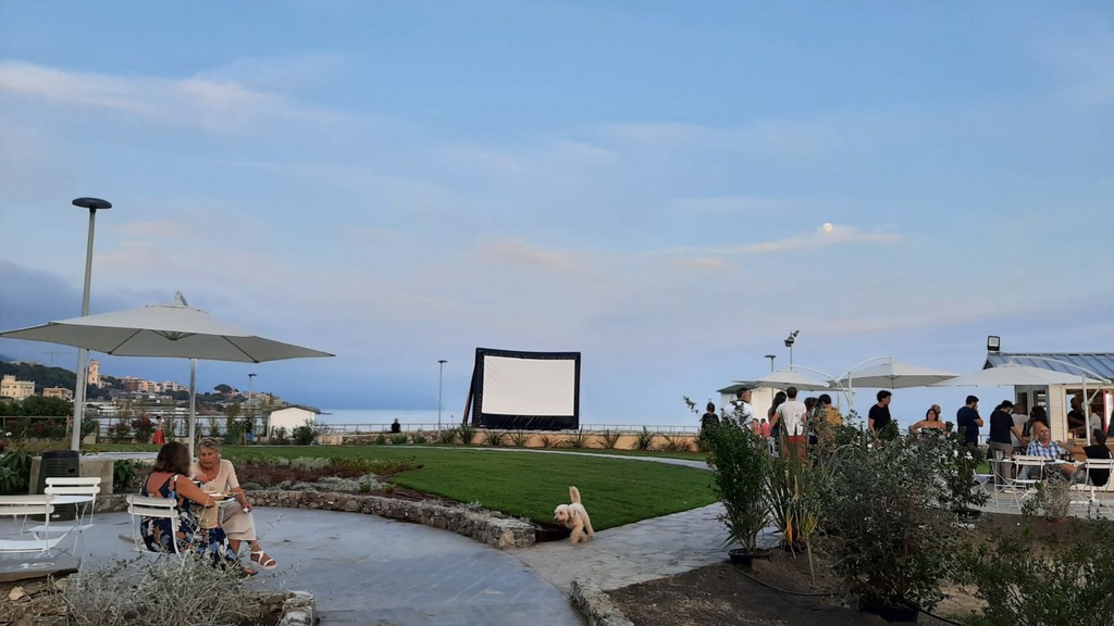 Sdraio, cuffie e bibita sul tavolino davanti al mare. A Sturla da mercoledì 21 luglio si va al cinema così. Sul depuratore di via del Tritone appena nato, è già un successo di gradimento ‘Circuito sul mare’, uno spazio completamente nuovo nella concezione che permette una fruizione rilassata e vacanziera.