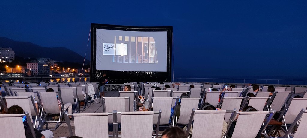 Alla prima ecco il film ‘Black Widow’ con Scarlett Johansson: ogni coppia era sulla sdraio affiancata da un tavolino in legno su cui posare la consumazione. Cartoccio di calamari, acciughe e patatine fritte, baguette, croque monsieur, galette estive, insalate, cocktail, birra, gelati è quel che serve il Bistrot sul mare, mentre, come già sperimentato a Villa Gruber, gli spettatori sono dotati di cuffie silent cinema, nel rispetto del vicinato e dell’ambiente.