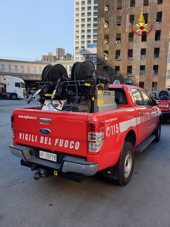 Quattro di loro sono partiti via terra utilizzando due fuoristrada allestiti con un gruppo pompa e serbatoio idrico