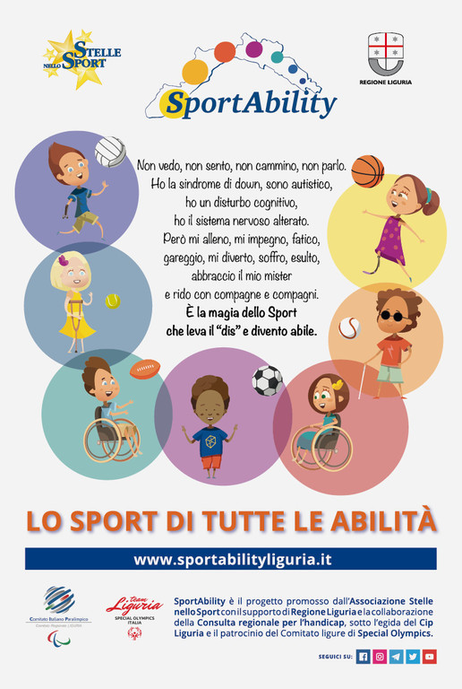 Si alza il sipario su 'SportAbility', il progetto che l’associazione ‘Stelle nello sport’ ha creato, col supporto di Regione Liguria, per promuovere le attività che hanno come focus i valori dell’inclusione e dell’integrazione. Un progetto cross-mediale che ha l’obiettivo di sostenere le associazioni liguri che coinvolgono persone con disabilità fisica e/o intellettivo relazionale e promuovere tutte le abilità dello sport per una crescita inclusiva, relazionale e sana: nasce così il portale www.sportabilityliguria.it che racconta le belle storie dello sport che include.