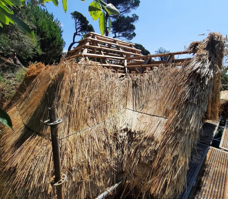 I lavori, come spiegano i gestori della struttura che è da parecchi anni una delle principali attrazioni del ponente genovese, “procedono a ritmi serrati e ormai il più è fatto. I terrazzamenti con gli alberelli di ulivo sono stati puliti e sistemati, le scalinate di collegamento tra fasce e zona della capanna sono state realizzate, la vegetazione adiacente all’area è stata potata ad arte e, infine, la capanna è stata conclusa. Mancano solo l’inserimento di qualche arbusto scenografico, appena le temperature scenderanno, ancora qualche piccolo tocco, e il restauro potrà ritenersi concluso”.