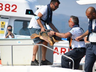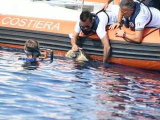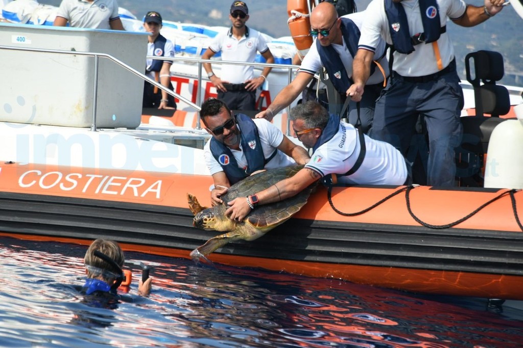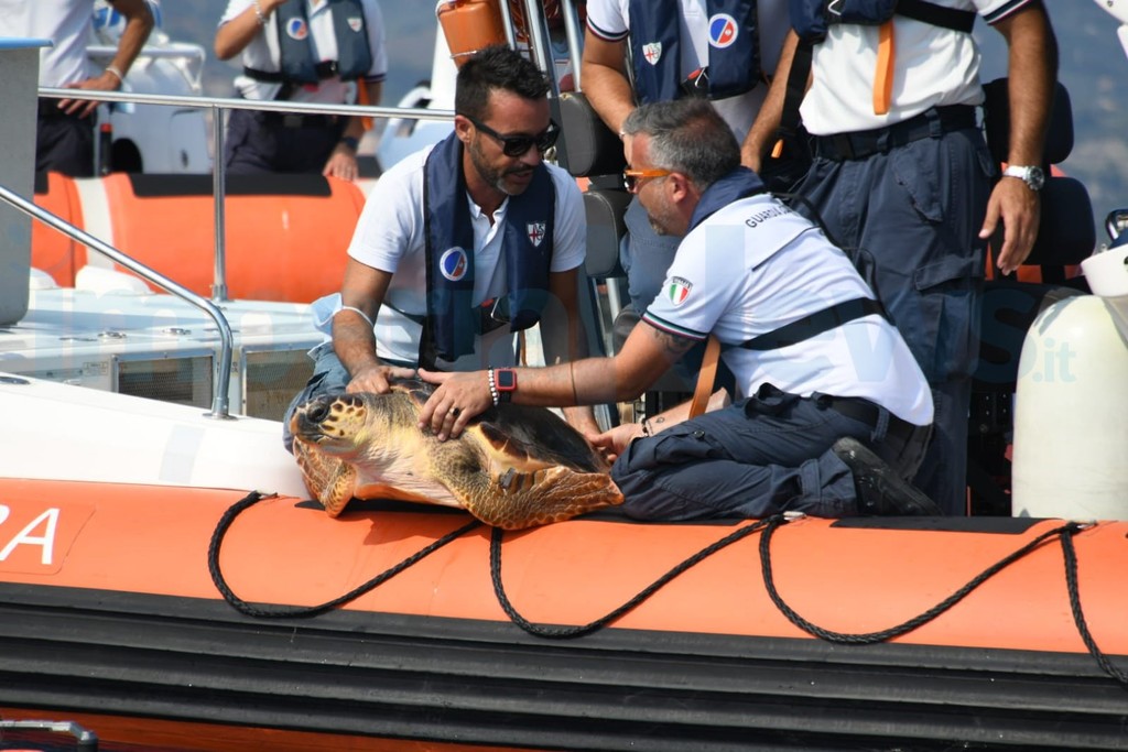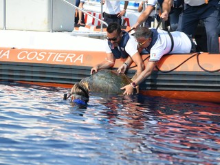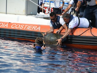 E’ stata liberata in mare, nel primo pomeriggio di domenica, con la CP882 della Guardia Costiera, a largo di Imperia, l'enorme tartaruga Vangelina salvata il 17 giugno al largo di Imperia. L'esemplare di 'caretta caretta' in difficoltà era stato segnalato dall’equipaggio del ‘Corsara’ e dall’associazione ‘Delfini del Ponente’.