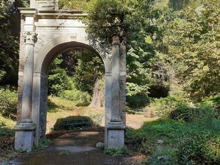Il percorso, ispirato alla Divina Commedia di Dante Alighieri, era composto da scenografie in grado di suscitare nel visitatore emozioni e riflessioni facendogli incontrare rovine, marmi, il ‘Leone’ e la grotta dell’Eremita. L’arco segnava idealmente il passaggio negli inferi e, da lì, un percorso di elevazione conduceva all’area che, attualmente recintata per i daini, era attraversata dall’acqua purificatrice, il cui ruscello invitava ad innalzare lo sguardo verso il Santuario delle Grazie, immersi in uno scenario bucolico fatto fattorie e animali al pascolo.