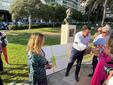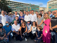 Molte le domande sono state poste dai giornalisti al Leader, che ha risposto sotto il sole cocente di piazza Rossetti.
