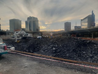 Constatata che la presenza di macchinari escavatori e spaccapietre di notevoli dimensioni in funzione che dava subito ad intendere la volontà di velocizzare i lavori di escavazione e preparazione delle fondamenta del futuro parcheggio e dell'area di vendita.