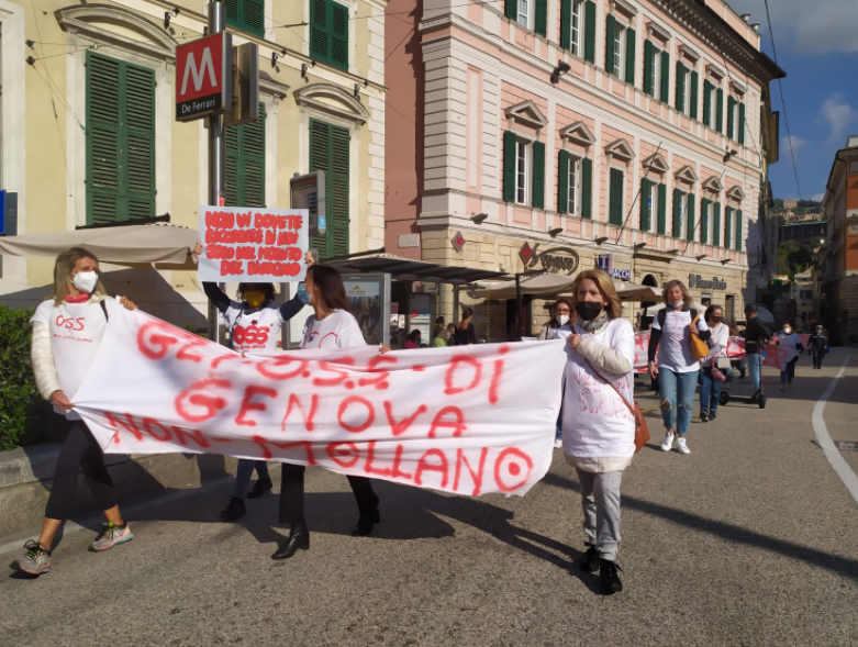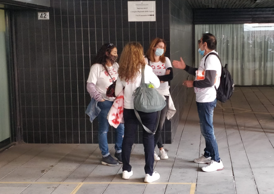 La protesta è in corso e si è spostata verso la Regione in piazza De Ferrari, e adesso le lavoratrici stanno andando in via Fieschi, dove si svolge il consiglio regionale.