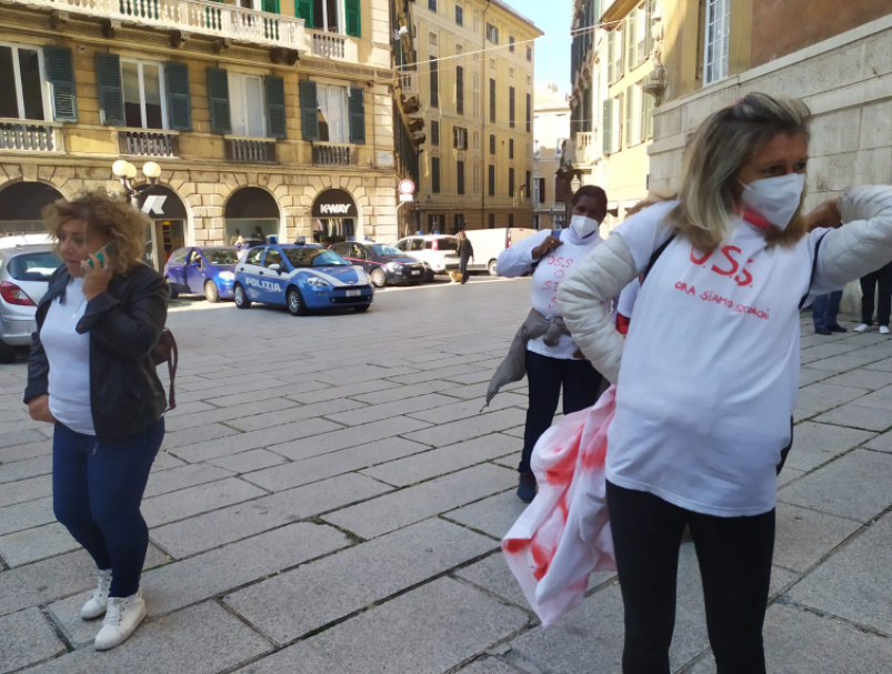 Continuano le proteste a Genova, questa volta tocca agli Operatori Socio Sanitari che si sono radunati questa mattina davanti alla Prefettura.