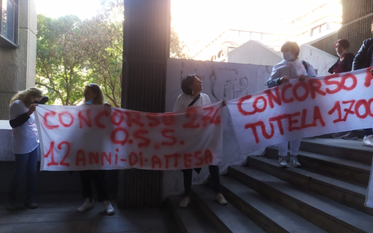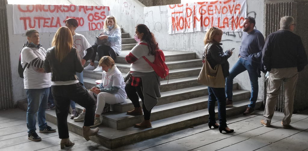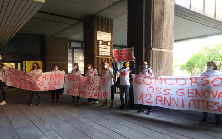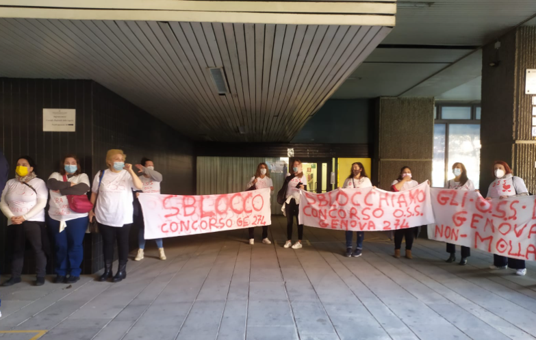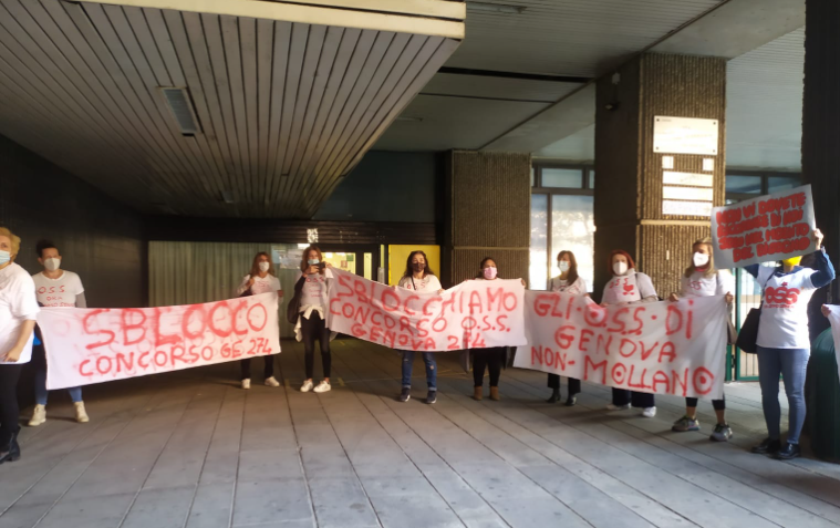 La causa della protesta è per il blocco del Concorso OSS valido per entrare con un contratto a tempo indeterminato nelle varie Asl liguri.