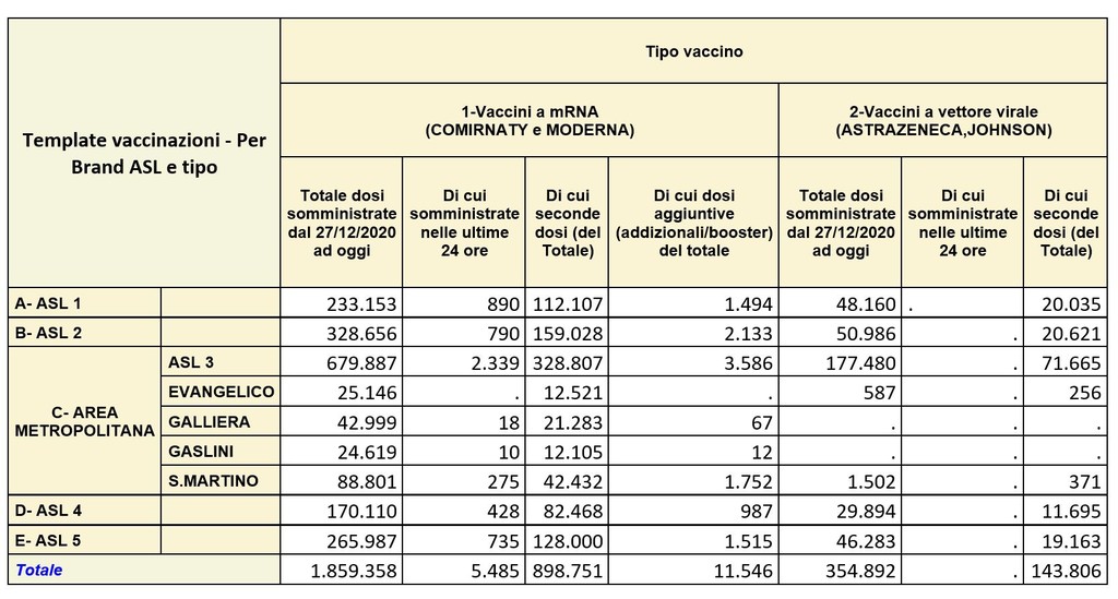 Segnalato inoltre il decesso di un uomo di 87 anni avvenuto all'ospedale San Paolo di Savona il 12 ottobre