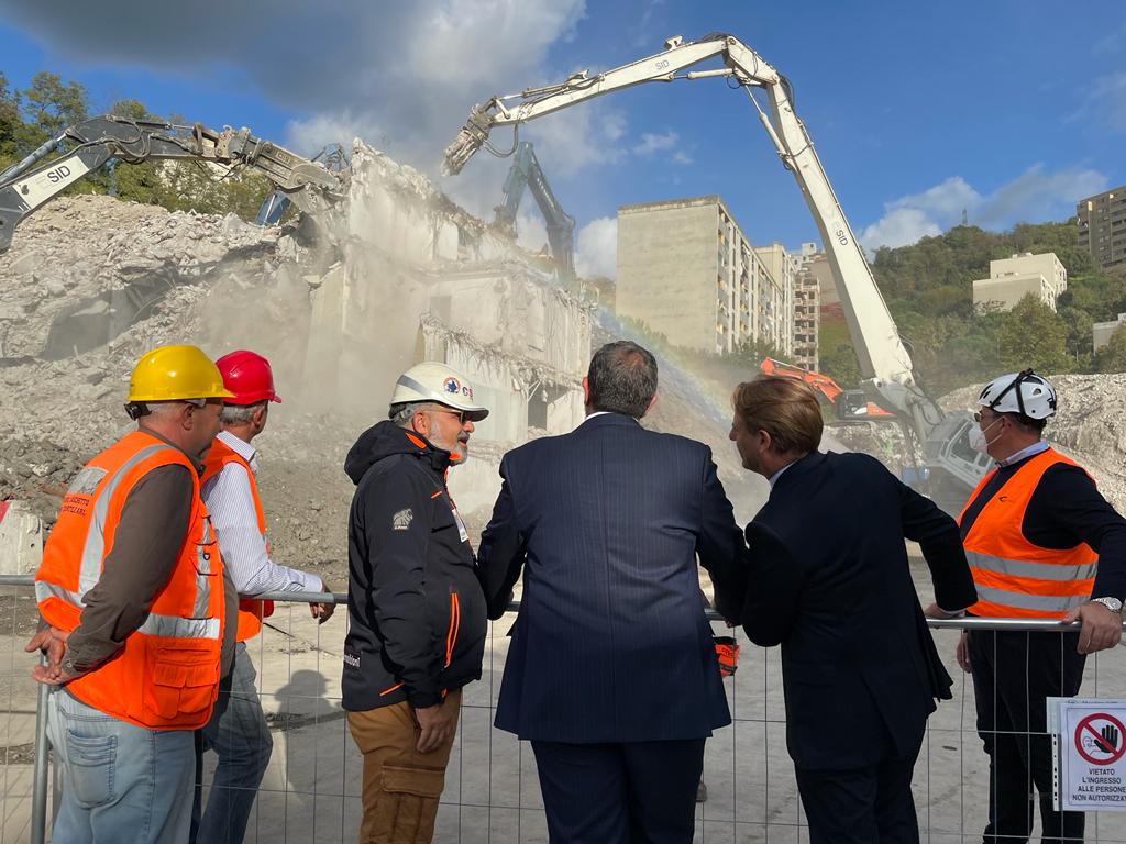 "Oggi è una giornata storica per la città di Genova - dice il sindaco Marco Bucci -. E' con grande emozione che assistiamo alle ultimissime demolizioni della Diga di Begato"