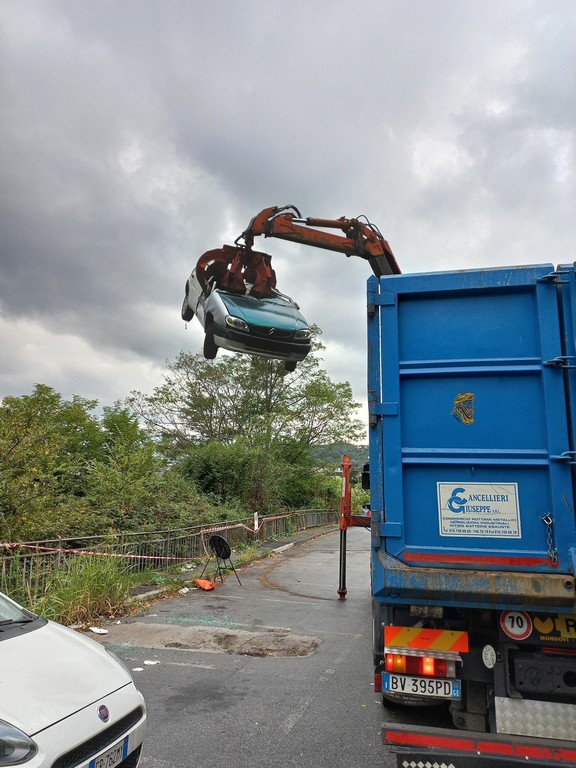 Polizia Locale, rimossi cinque relitti di auto e diversi telai di motocicli nella zona di San Quirico (FOTO)