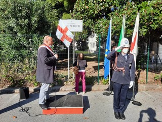 Si è tenuta questa mattina a Pegli la cerimonia di intitolazione al partigiano Luigi Perotti (1926-1945) dei giardini accanto alla scuola primaria Mario Emanuelli, nell’area dell’ex ospedale Martinez.