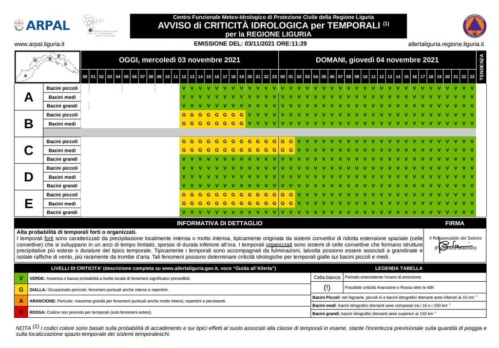 Le previsioni per le prossime ore nel bollettino Arpal