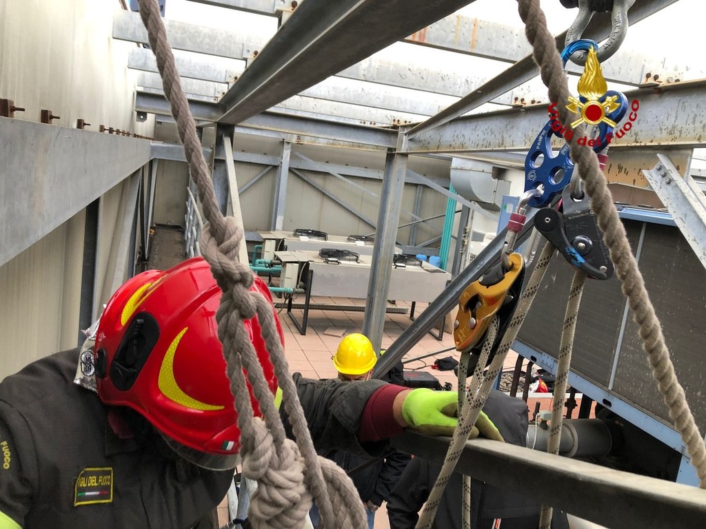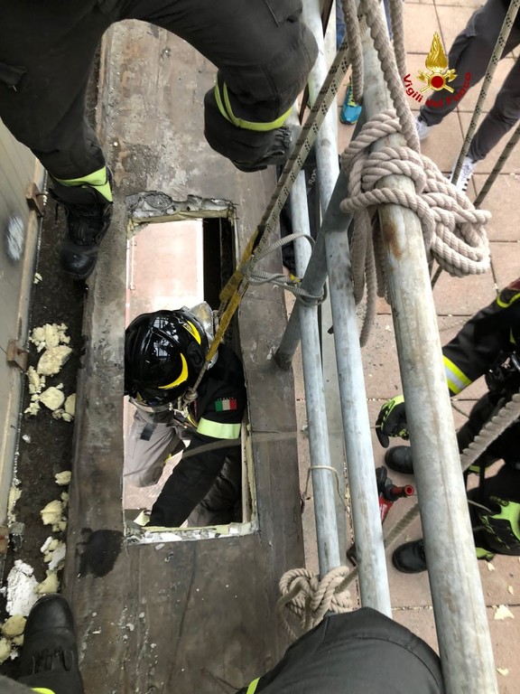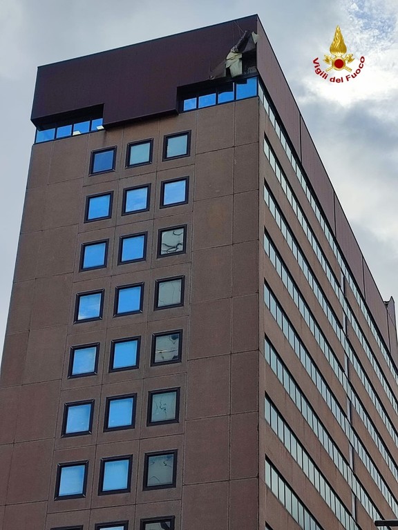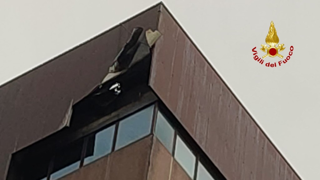 Proseguono le operazioni di rimozione parti pericolanti da parte dei Vigili del fuoco in seguito al forte vento di questi giorni a Genova.