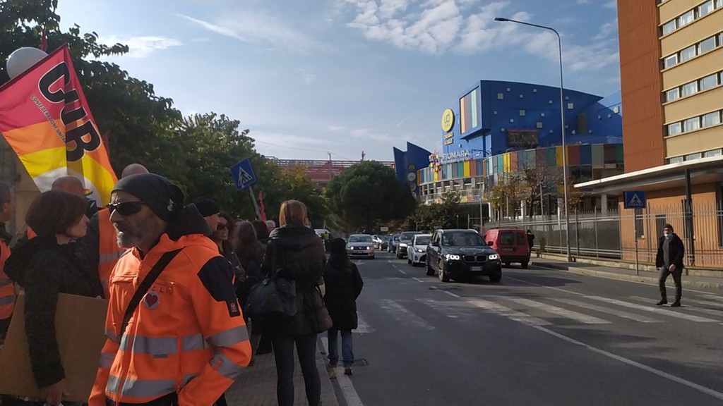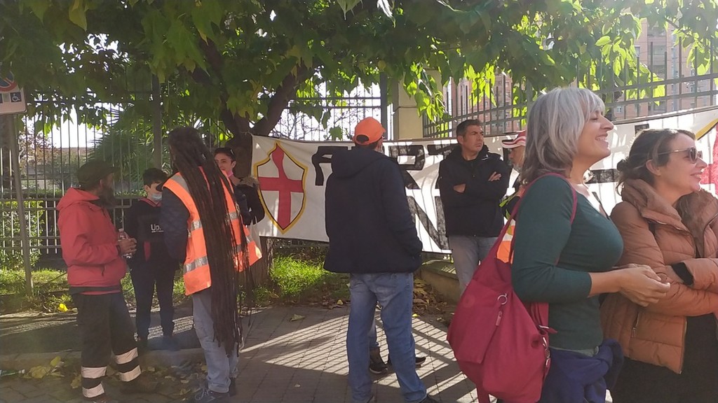 Lavoratori Hitachi in presidio questa mattina davanti la sede dell’azienda, a Sampierdarena, contro green pass e l’obbligo di rientrare a lavoro in presenza per due giorni a settimana