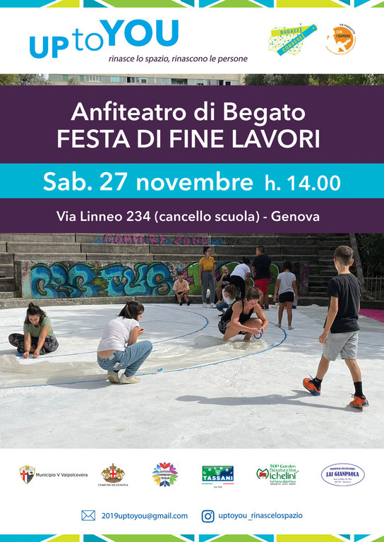 Il 27 novembre con una festa si concluderà l’azione di rigenerazione urbana di ‘Up to you’ nell’ambito del progetto ‘Ragazzi connessi’, capofila l’Alpim (Associazione ligure per i minori) e selezionato dall’impresa sociale ‘Con i bambini’ nell’ambito del Fondo per il contrasto alla povertà educativa minorile. Sarà un pomeriggio di festa per tutti in via Linneo a partire dalle 14.