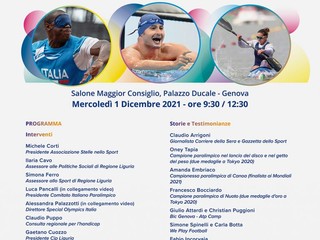 Tra gli ospiti d’onore Oney Tapia (due volte medaglia di bronzo ai Giochi di Tokyo 2020), intervistato da Claudio Arrigoni, giornalista esperto di sport paralimpico per Corriere della Sera e Gazzetta dello Sport. Al fianco delle assessore regionali Ilaria Cavo (politiche sociali) e Simona Ferro (sport), interverranno Francesco Bocciardo (doppio oro paralimpico a Tokyo 2020 nel nuoto), Amanda Embriaco (campionessa azzurra di canoa paralimpica).