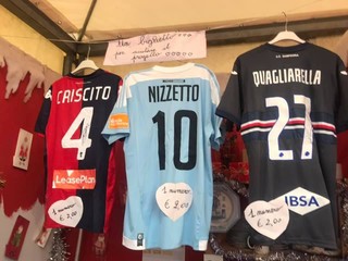 Lotteria benefica con le maglie dei giocatori di Genoa, Sampdoria ed Entella