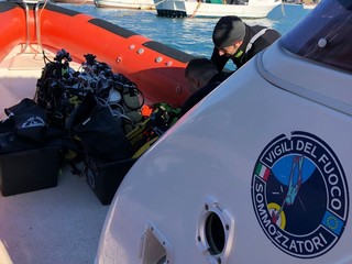 I Sommozzatori dei Vigili del Fuoco, giunti da Genova, stanno effettuando immersioni nell'area indicata. Le condizioni del mare e la visiblità in acqua non sono ottimali