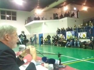 Molti dei circa 200 presenti (in tanti non sono riusciti a entrare) hanno abbandonato la palestra del centro civico Buranello dopo i primi minuti di intervento del sindaco, accusato di parlare a nome delle aziende e non dei cittadini. I primi fischi sono arrivati quando Bucci ha ricordato la responsabilità penale in capo al sindaco in caso di incidenti che provochino danni gravi o addirittura la morte di un cittadino a causa di opere come il petrolchimico.