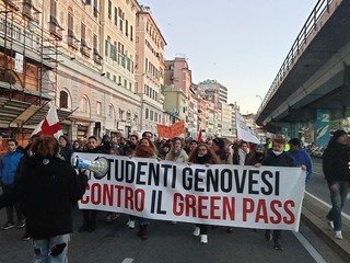 “No Draghi no pass”, il tema del corteo partito da piazza Caricamento e arrivato ai giardini di Brignole