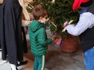 Ramoscelli d'alloro, noci, pigne, fette d'arancia essiccate e maccheroni genovesi: sono queste le decorazioni con cui stamane i piccoli alunni delle classi 2A e 3A della scuola primaria 'De Scalzi - Polacco' hanno addobbato l'albero di Natale nell'atrio di Palazzo Tursi come da tradizione della Genova di un tempo; ad accogliere bimbi ed insegnanti l'assessora al Centro storico Paola Bordilli.