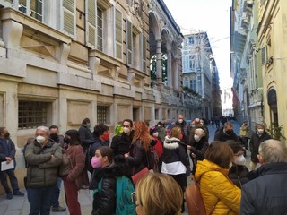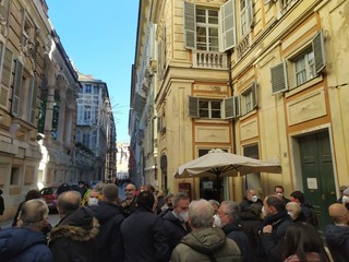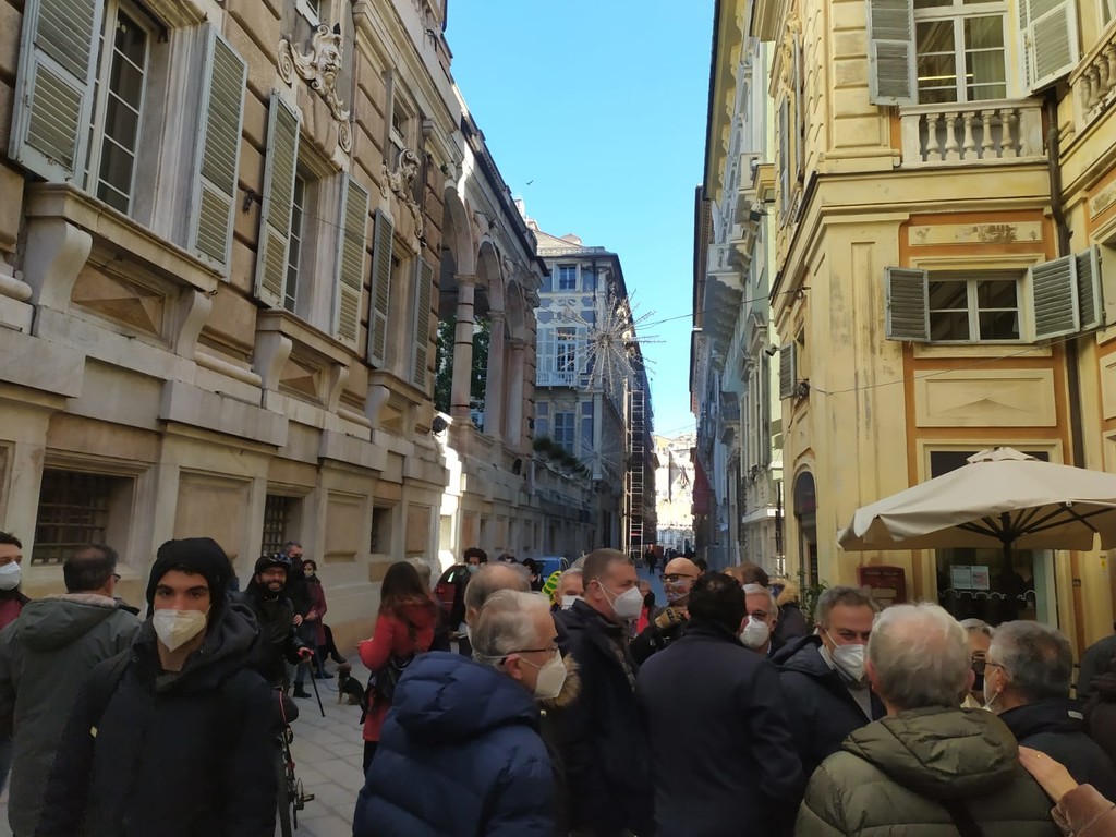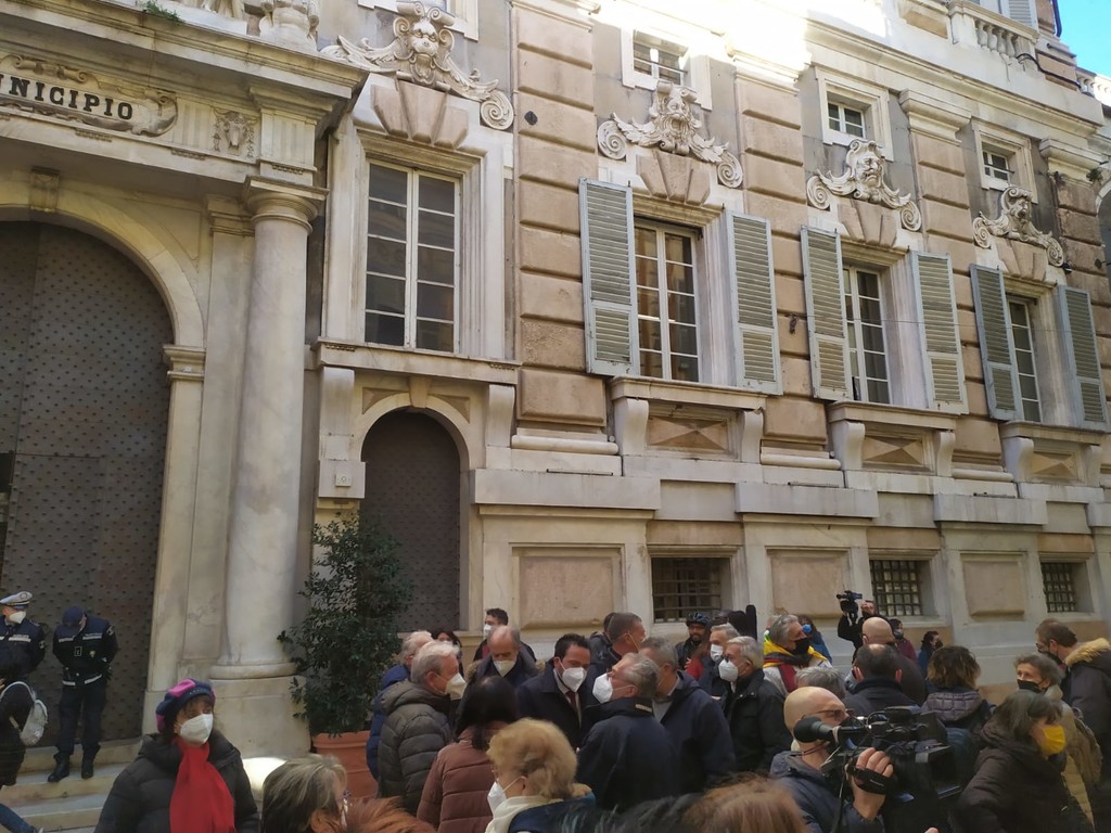 Il consiglio comunale è a porte chiuse e fuori palazzo Tursi scatta la protesta di un centinaio tra abitanti di Sampierdarena, attivisti, comitati, Legambiente ed esponenti politici di Comune e Regione contro lo spostamento dei depositi chimici da Multedo a ponte Somalia.