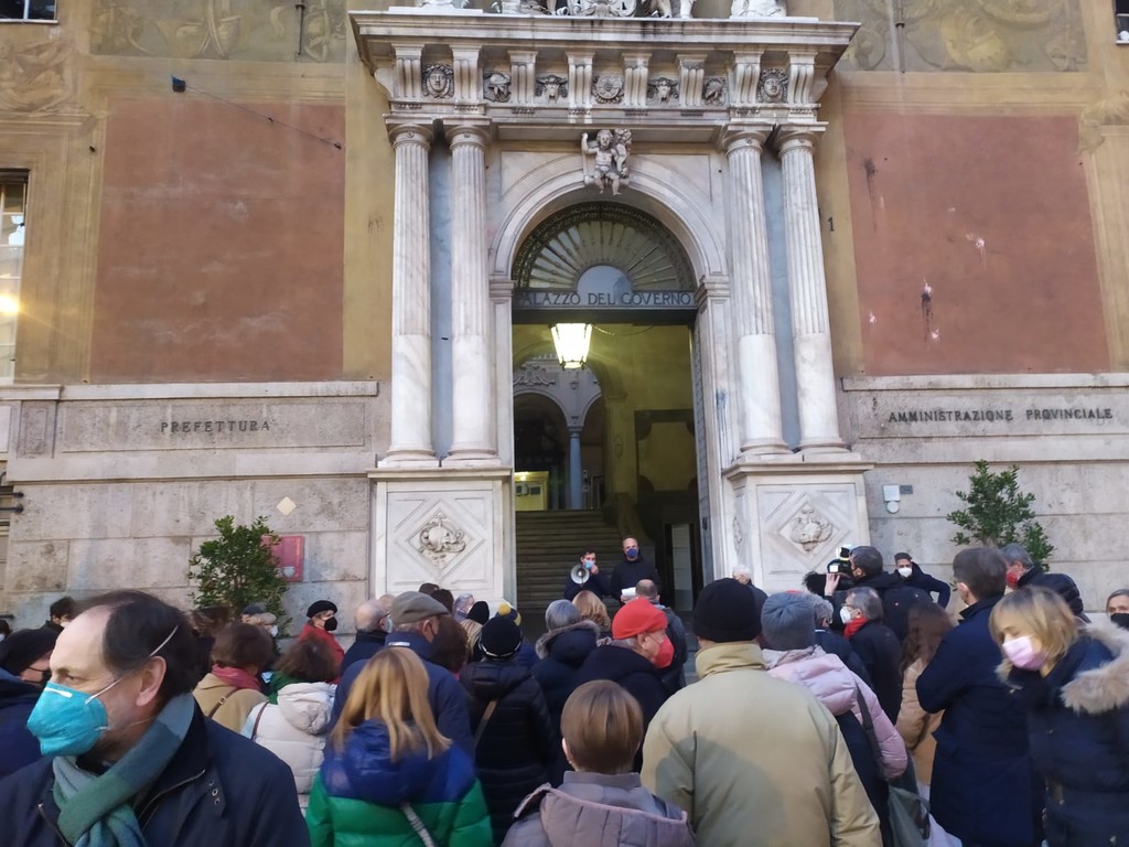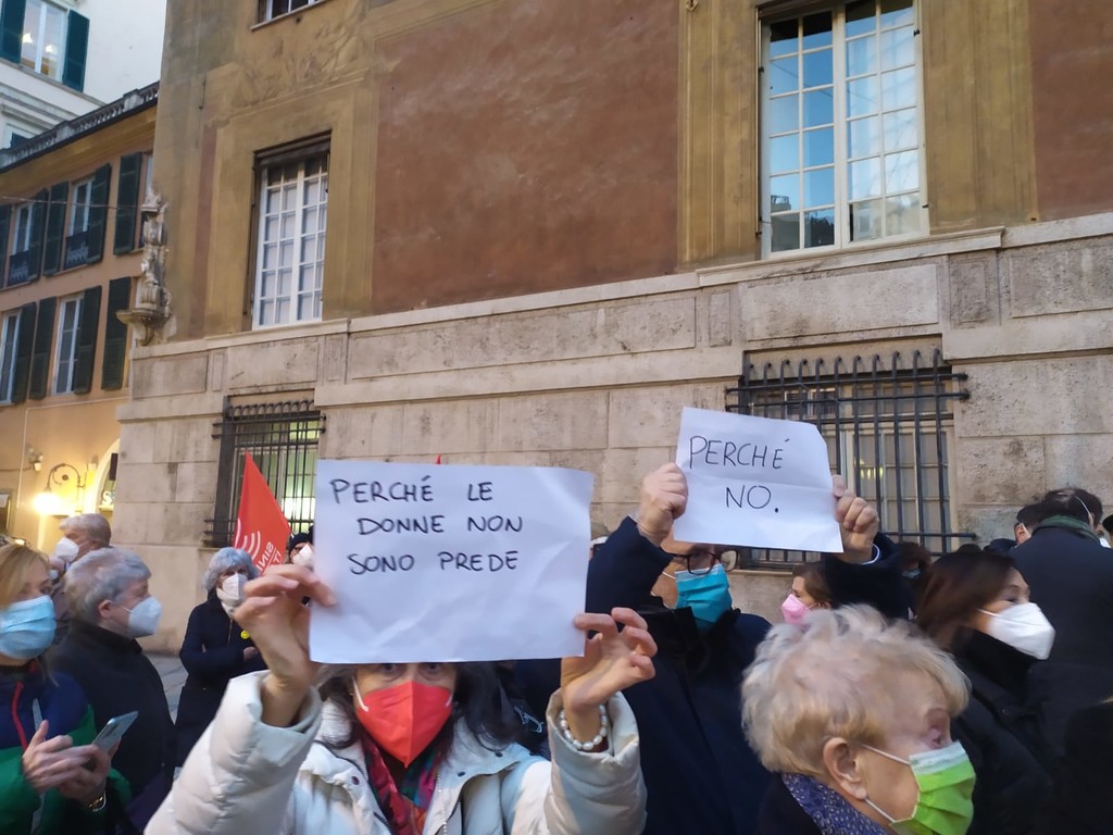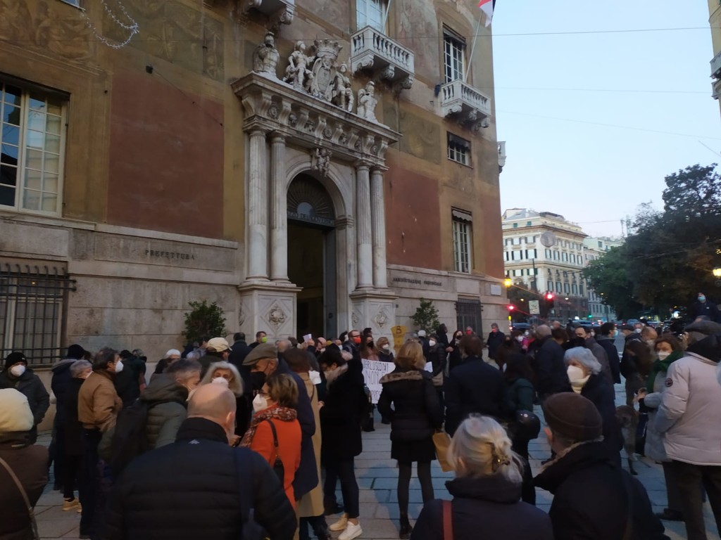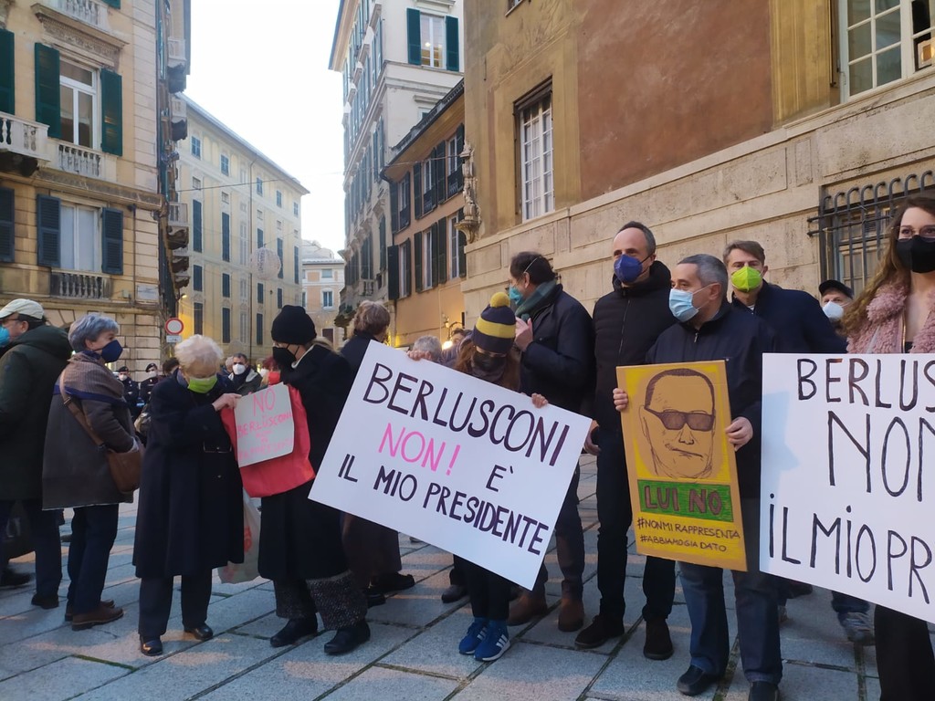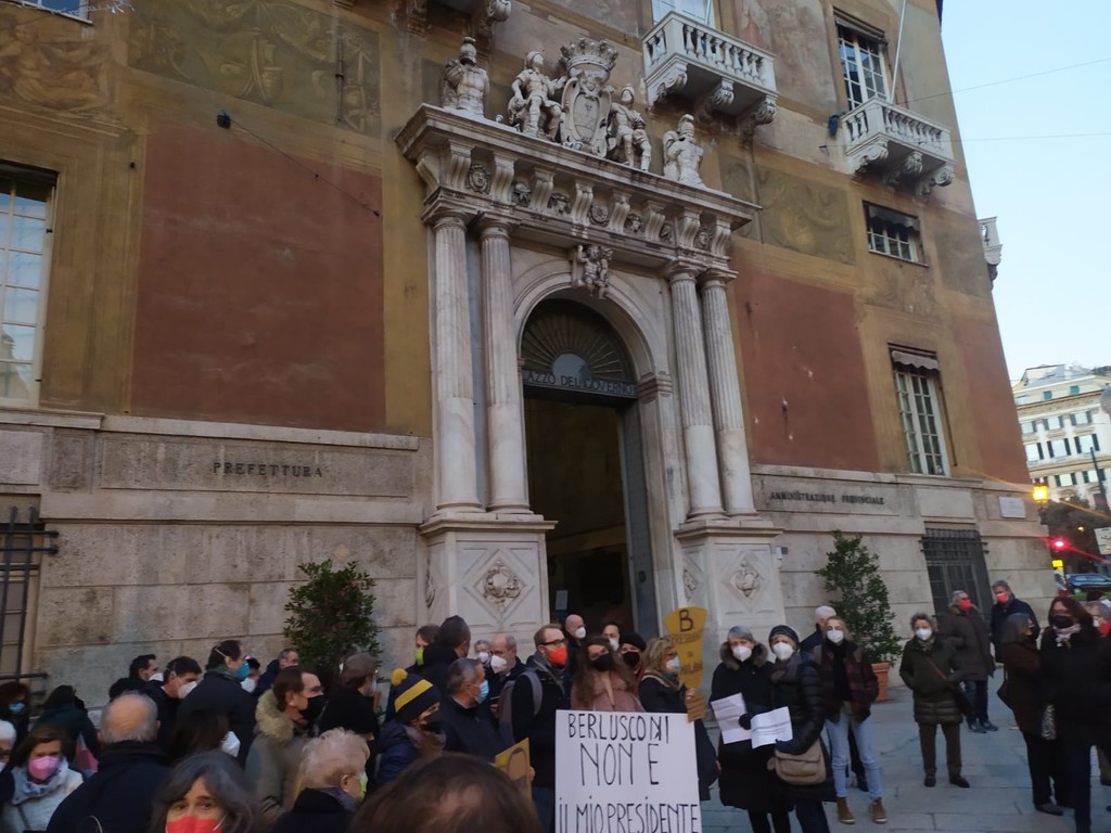 Un centinaio tra esponenti politici e cittaidni hanno raccolto l’invito di Lista Sansa e Genova che Osa a manifestare questo pomeriggio davanti alla prefettura contro la candidatura di Silvio Berlusconi alla presidenza della Repubblica.
