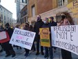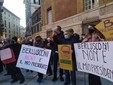 Nel corso della manifestazione sono stati esposti striscioni e cartelloni contro la candidatura dell’ex presidente del consiglio.