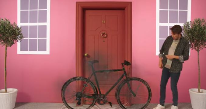 Nella mente dell’amico dell’acquirente, alla parola Genova e sapendo che la bici è stata pagata prima di vederla, compare una bicicletta con le ruote quadrate, un’altra fatta con i palloncini e un’altra che si sgretola al solo tocco. L’altro giovane però lo rassicura spiegando che l’acquisto avviene in sicurezza.