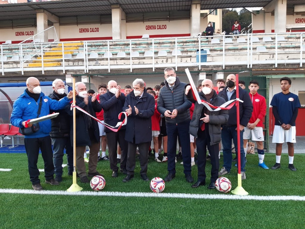 Nuovo look per il campo sportivo “Italo Ferrando”, nel quartiere di Cornigliano, inaugurato questo pomeriggio a conclusione dei lavori di restyling iniziati il 29 luglio 2021.