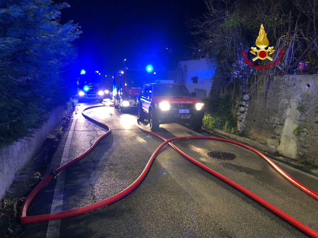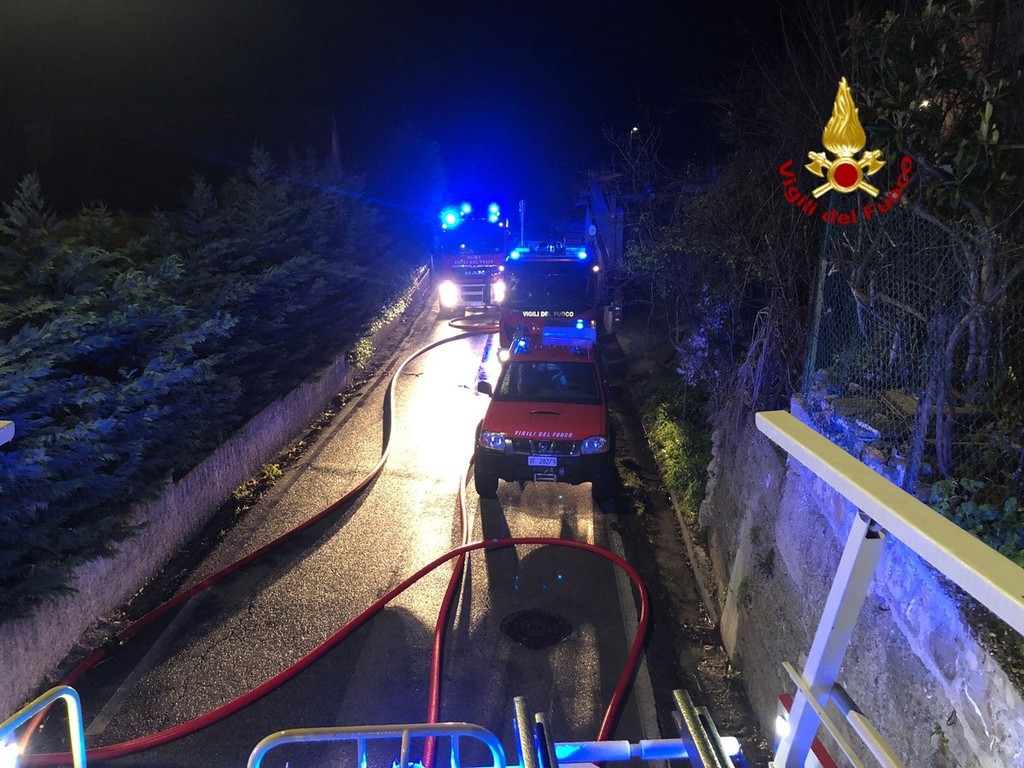 Un vasto incendio ha colpito la scorsa notte, verso l'una e mezza, una casa in via Otrali a Trensacco.