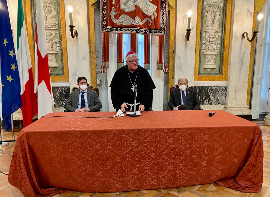 Nel suo intervento di chiusura della cerimonia l’arcivescovo Tasca ha ringraziato la Pubblica Amministrazione e il Comune di Genova in particolare per il lavoro svolto nel periodo pandemico nella promozione del bene comune. “Un tema che ci accomuna”, ha detto monsignor Tasca, sottolineando l’impegno “di chi ci governa nel far rispettare normative anche molto gravose ma necessarie per la nostra salute”. L’arcivescovo di Genova ha sottolineato l’importanza dello stare vicino alle persone, soprattutto quelle più disagiate, auspicando una maggiore partecipazione dei cittadini alla vita pubblica. “Bisogna aiutare le persone a crescere secondo il principio della partecipazione”, ha detto Tasca, combattendo l’idea che debbano essere sempre gli altri a risolvere i problemi. “Il più grande regalo che possiamo fare alla nostra città è di far crescere tra i cittadini il valore della solidarietà”, ha aggiunto Tasca, che ha espresso una sincera preoccupazione per le tante fragilità emerse nel periodo dell’emergenza sanitaria, in particolare tra i più giovani.