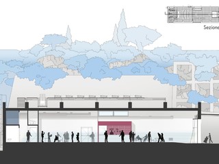 Nella parte posteriore è previsto uno spazio magazzino - protetto da un’altra pensilina - per il materiale raccolto e destinato al riuso, dove potrebbero essere organizzati anche eventi all’aperto. Per conservare la testimonianza della destinazione a mercato, il progetto vede anche il riutilizzo del portellone originale a due ante scorrevoli, in semplice carpenteria metallica e vetro.