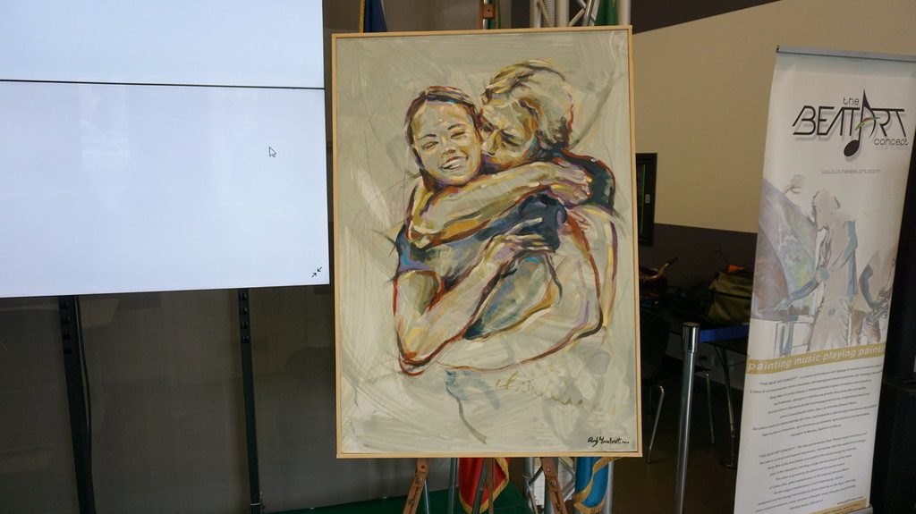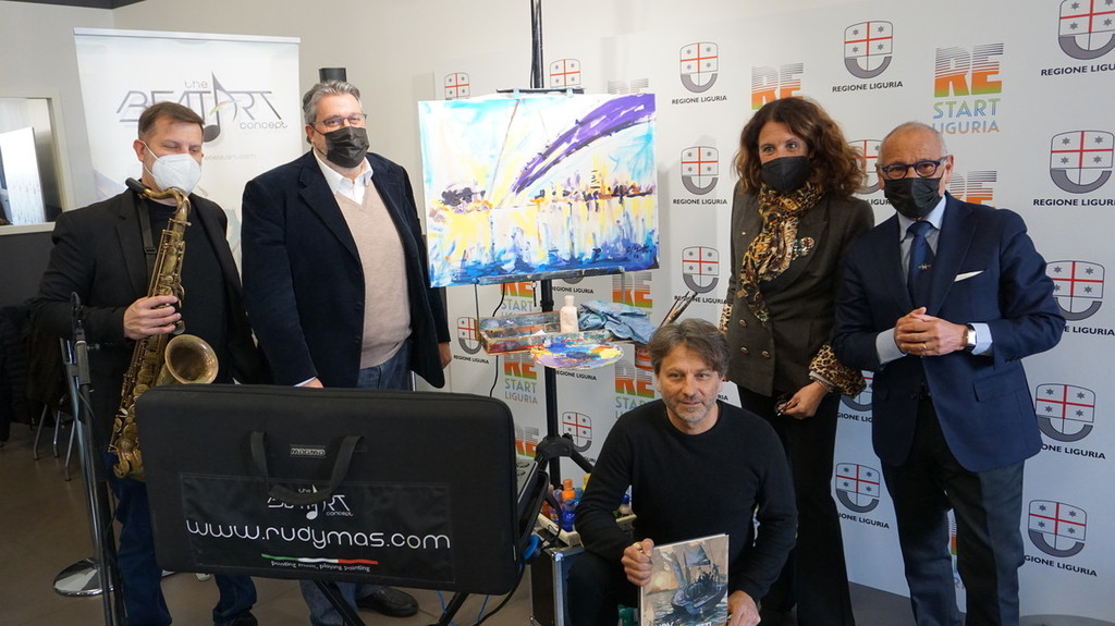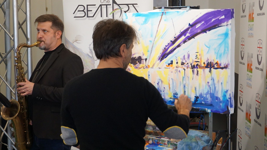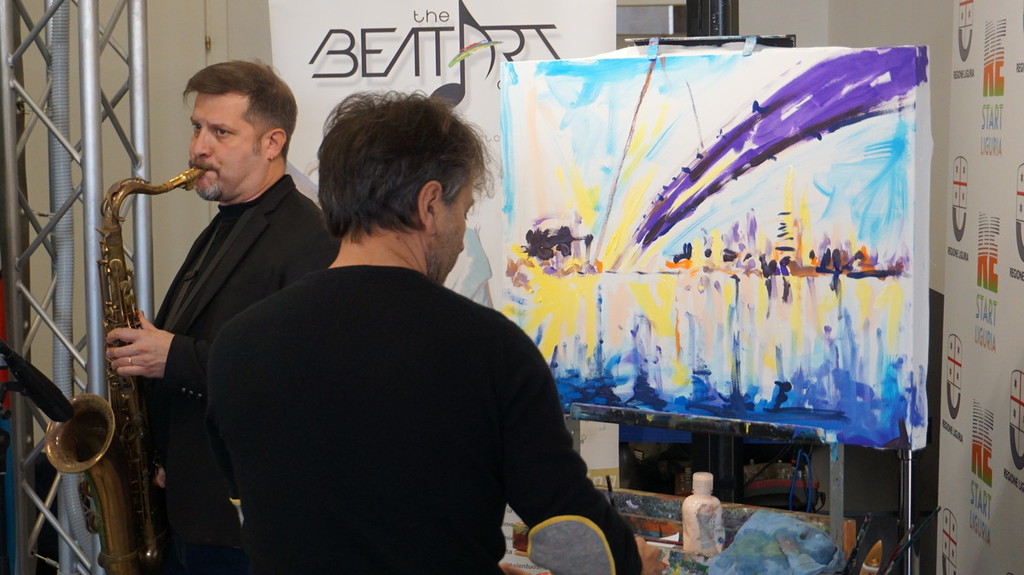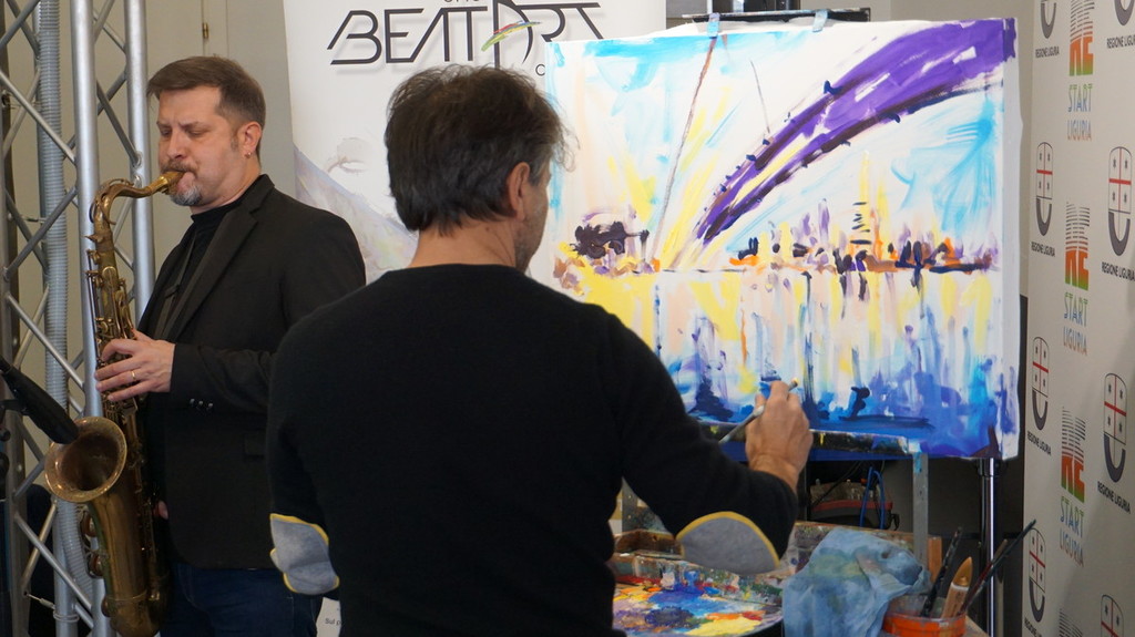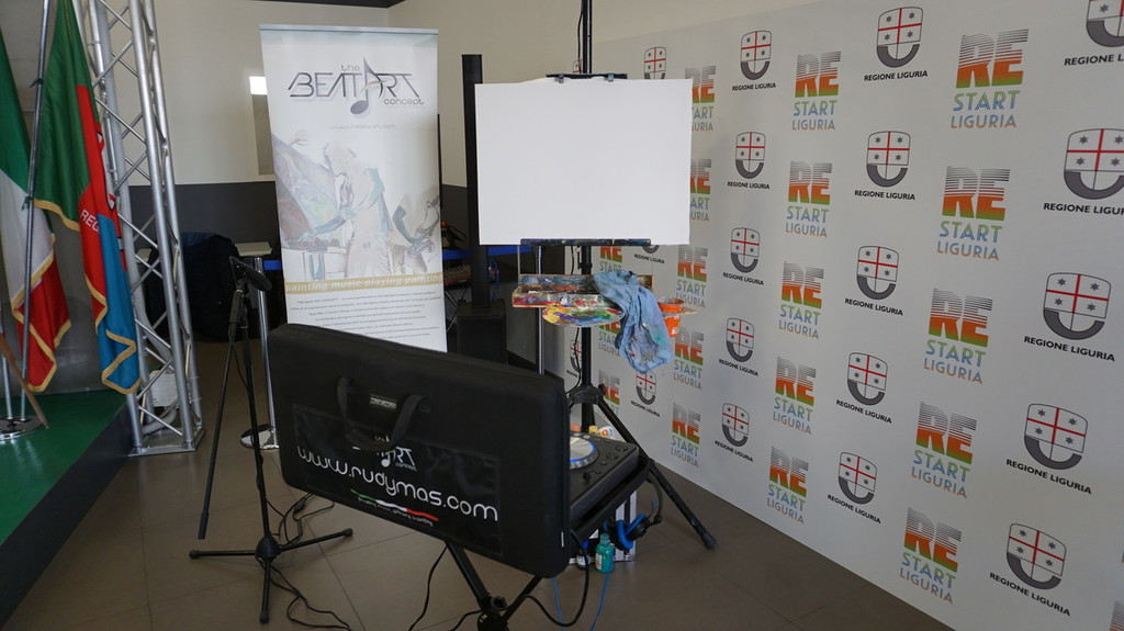 Promotrice dell’evento è stata l’assessore alla cultura Ilaria Cavo, la quale ha sottolineato quanto sia grande il talento di Rudy e il fatto di essere un nostro conterraneo: “Rudy è un nostro talento e lo ha dimostrato oggi ma anche precedentemente con le sue performance a livello internazionale. Dipingere a ritmo di musica è un’idea nuova che unisce l’arte figurativa alla tecnologia. L’opera di Mascheretti verrà messa a disposizione per il Salone Orientamenti di novembre per stimolare un concorso creativo per i ragazzi. Ne veniamo dalla tappa sanremese di Orientamenti Tour dove abbiamo, appunto, parlato di arte, creatività e innovazione tecnologica in sé. Il quadro di Rudy può essere uno stimolo per la creatività dei ragazzi”.