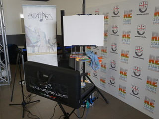 Promotrice dell’evento è stata l’assessore alla cultura Ilaria Cavo, la quale ha sottolineato quanto sia grande il talento di Rudy e il fatto di essere un nostro conterraneo: “Rudy è un nostro talento e lo ha dimostrato oggi ma anche precedentemente con le sue performance a livello internazionale. Dipingere a ritmo di musica è un’idea nuova che unisce l’arte figurativa alla tecnologia. L’opera di Mascheretti verrà messa a disposizione per il Salone Orientamenti di novembre per stimolare un concorso creativo per i ragazzi. Ne veniamo dalla tappa sanremese di Orientamenti Tour dove abbiamo, appunto, parlato di arte, creatività e innovazione tecnologica in sé. Il quadro di Rudy può essere uno stimolo per la creatività dei ragazzi”.