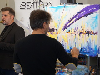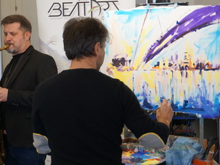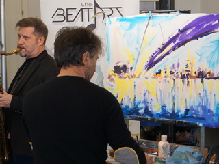 “Cerco di catturare l’energia del pubblico portandola sulla tela e mi lascio guidare dalla musica” fa sapere l’artista Rudy Mascheretti dopo aver dipinto “Ponte verso il futuro” accompagnato dal musicista Gabrysax. Mascheretti è un pittore innovativo ed avrebbe piacere se qualche giovane portasse avanti il suo lavoro e si dichiara disponibile a qualsiasi forma di collaborazione.