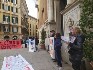 Prima dell'incontro, che non era programmato, il comitato che si oppone all'opera ha organizzato un flash mob davanti il palazzo della Città Metropolitana per ribadire il no all'opera: "Toti e Bucci con insistenza vogliono distruggere la piana del fiume Entella con la cementificazione", ha commentato il referente del comitato Stefano Appoggi, ricordando l'opposizione alla diga dei cittadini, ma anche dei sindaci dei comuni del territorio.