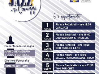 “Jazz in the Caruggi” (1-6 marzo, ore 18), Portare la musica di qualità nelle strade e piazze del centro storico coinvolgendo i pubblici esercizi della movida e, al contempo, sensibilizzare il pubblico al consumo responsabile è il senso del progetto “Jazz in the Carruggi” promosso da Assoartisti Confesercenti con il contributo del Comune di Genova, alla sua prima edizione.