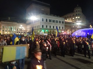 Genova, circa mille persone alla fiaccolata per la pace, padre Vitaliy: "Cinque giorni di terrore, ma non siamo soli (Foto e Video)