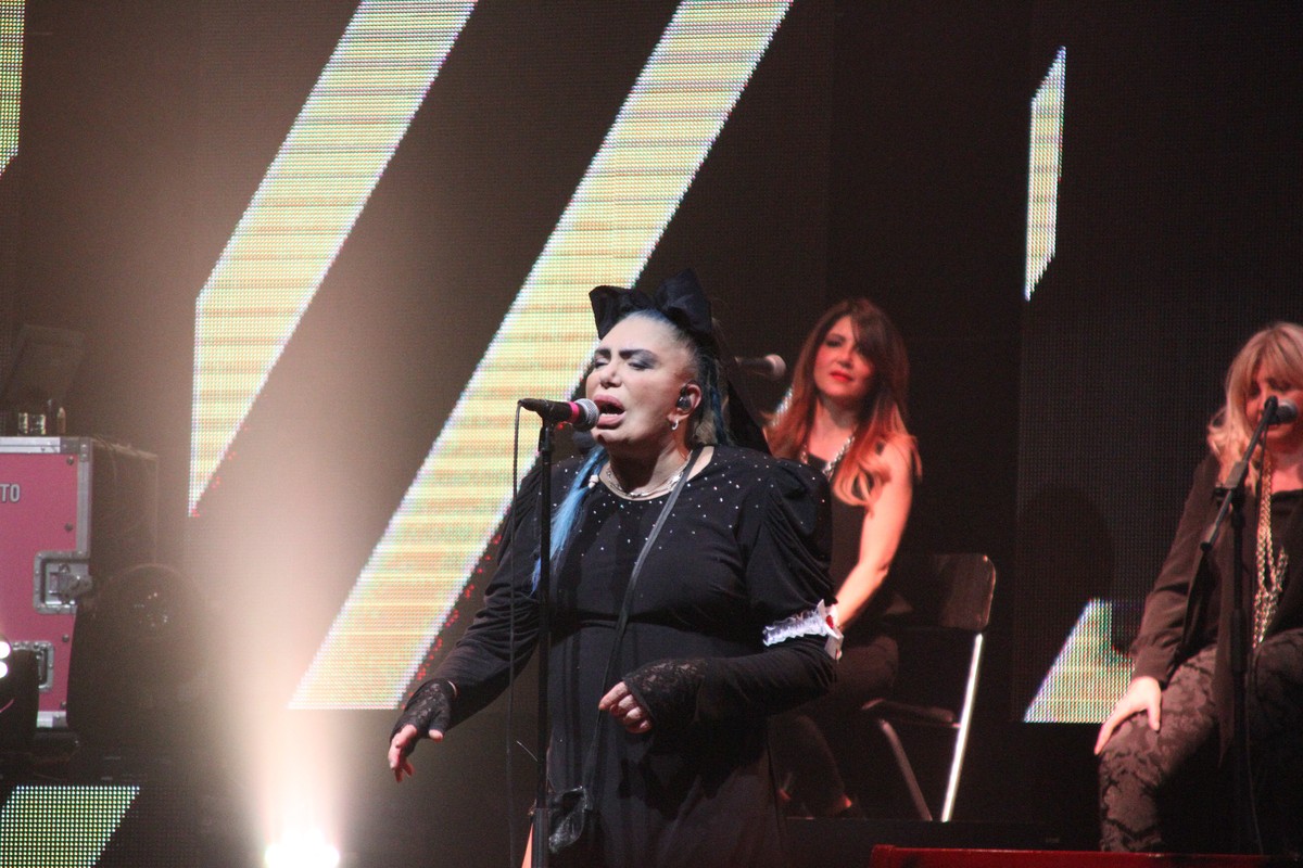 Vestita di nero, se non per i capelli azzurrissimi e gli stivali chiari, travolge con la sua “Figlia di…”, vero tormentone dell’album “Manifesto” dal ritornello travolgente e dai toni spesso provocatori. Si prosegue con l’ammaliante “Ninna nanna”, fino ad arrivare ai grandi capolavori ancora mancanti: “E la luna bussò” e “In alto mare”. Ed è proprio sulle note del penultimo brano che la Bertè si diverte a riprendere il pubblico e i suoi musicisti con lo smartphone, sorridendo compiaciuta e godendo ogni briciolo di affetto e di stima del suo pubblico. Un lungo percorso, sicuramente tortuoso, quello che ha portato una donna a diventare padrona del suo mondo, e a non aver paura di mostrarsi per quello che è: una figlia di… Loredana.