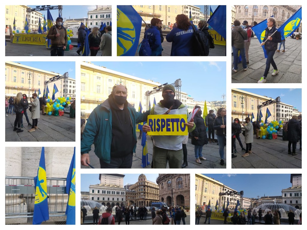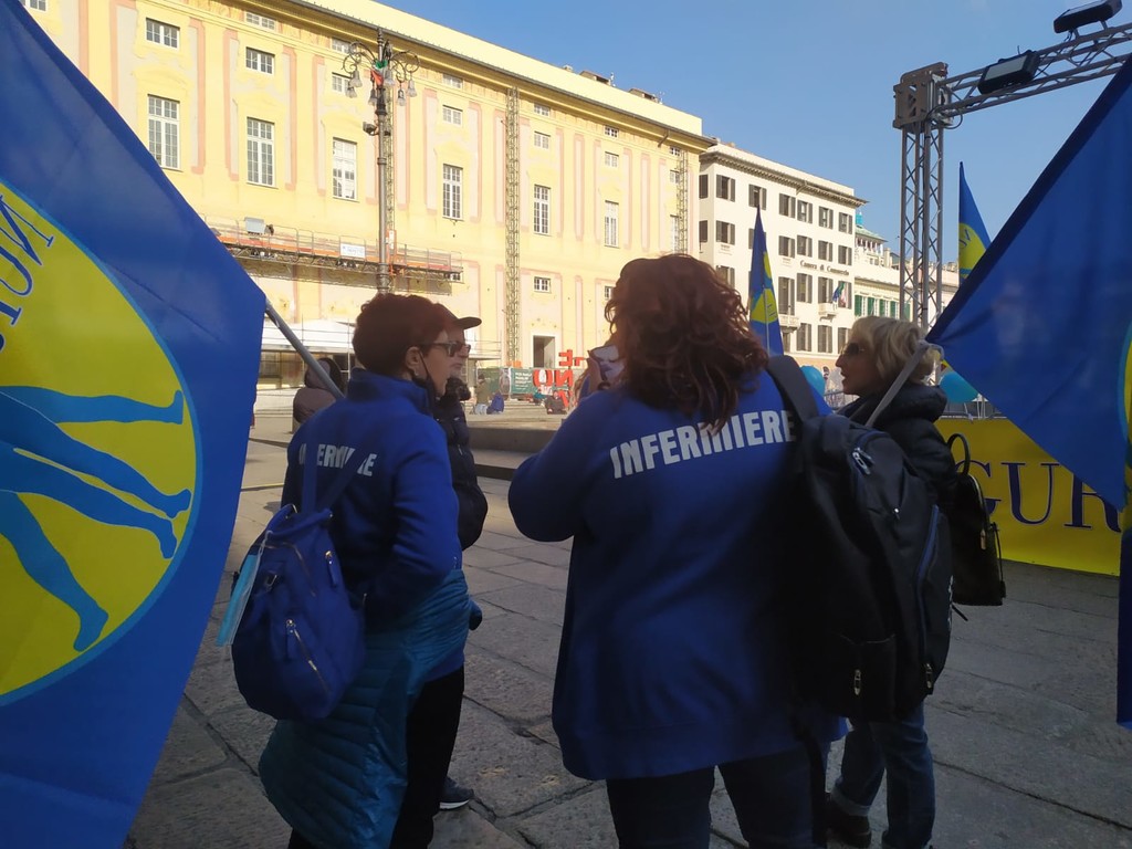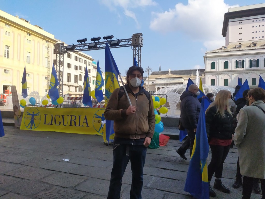 “Dopo due anni di pandemia: le professioni sanitarie, in particolar modo gli infermieri, ancora attendono che venga riconosciuto il loro impegno, il loro spirito di civico servizio e le competenze e professionalità dimostrate”. Il sindacato degli infermieri Nursing Up è sceso in piazza oggi in tutta Italia e anche a Genova con una manifestazione che si è tenuta davanti al palazzo della Regione in piazza De Ferrari.
