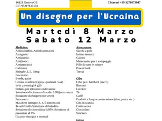 Sono cinque i gruppi principali sotto i quali sono elencati i beni di prima necessità da spedire al confine. Ci sono le medicine; i presidi di assistenza medica; le attrezzature; il cibo e i prodotti per l’igiene, elencati nella locandina dell’iniziativa sulla pagina Facebook del Civ. Intanto in molti si sono già mobilitati appena letto l’annuncio e da sabato presso il Carrefour di via Tortosa è già attiva una raccolta da sommare a quella appena lanciata, così come alla Farmacia Piva è in atto quella di farmaci a prezzi di costo in collaborazione con il Civ Nel Cuore di Marassi e Pokrova, l’associazione culturale e di promozione sociale, il cui nome tradotto dall’ucraino significa ‘patrocinio’, nata dai membri della comunità ucraina in Liguria, attiva dal 2003.