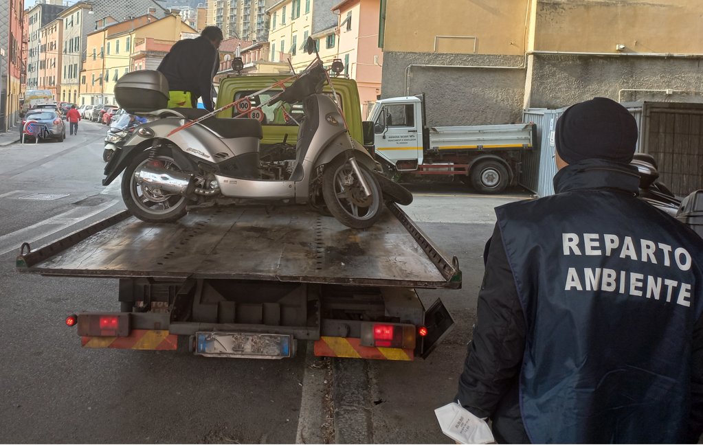 Proseguono gli interventi di rimozione di veicoli in stato di abbandono a cura del personale del Nucleo Ambiente Relitti della Polizia Locale di Genova sul territorio cittadino.