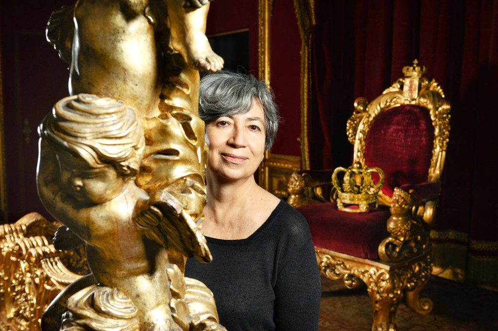 Tra i volti immortalati dal fotografo anche la direttrice della galleria genovese, ritratta tra gli arredi dorati che si trovano nelle stanze di quella che fu, anche, la residenza dei Savoia.