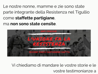 Chiunque avesse notizie, documenti e una storia da raccontare è invitato a scrivere il tutto all’indirizzo anpichiavari.segreteria@gmail.com inserendo anche un recapito telefonico.