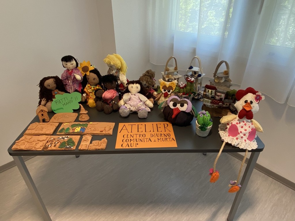 Le fotografie alle pareti, i quadri e i piccoli elementi di arredo sono stati realizzati da mano da ospiti dei centri diurni della comunità di Murta, e sono parte integrante di un processo di inclusione e condivisione.