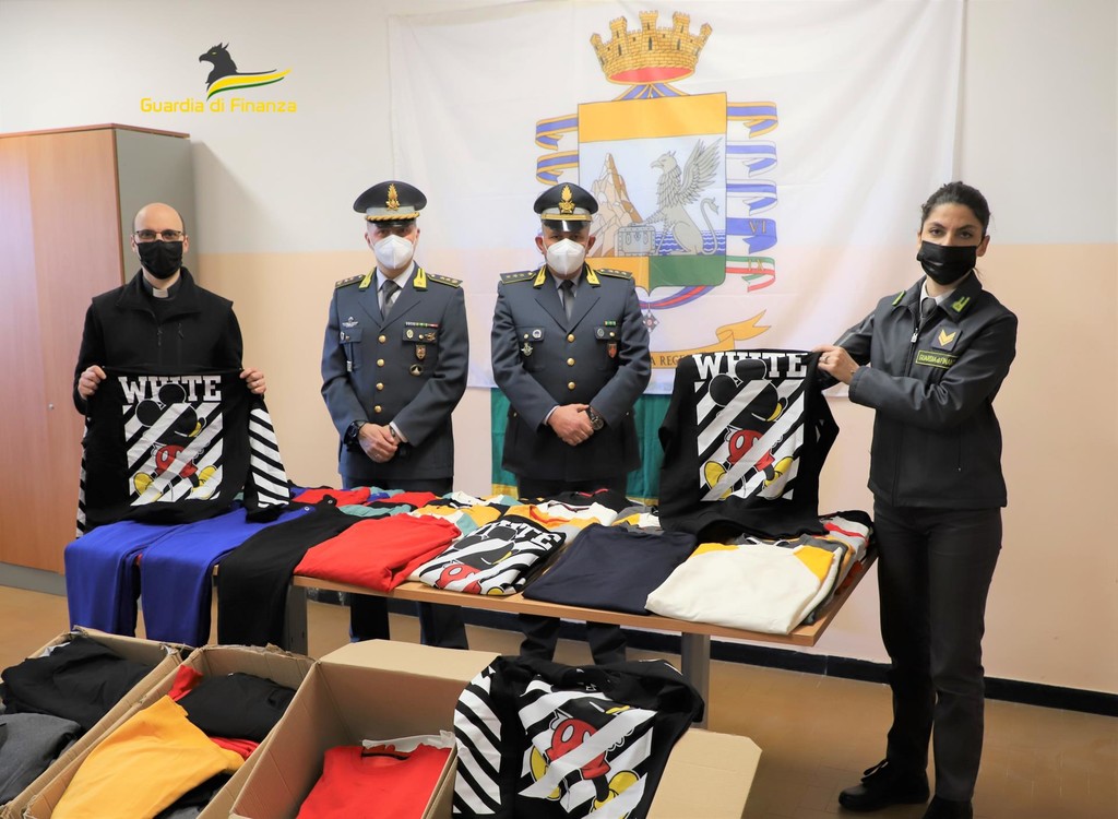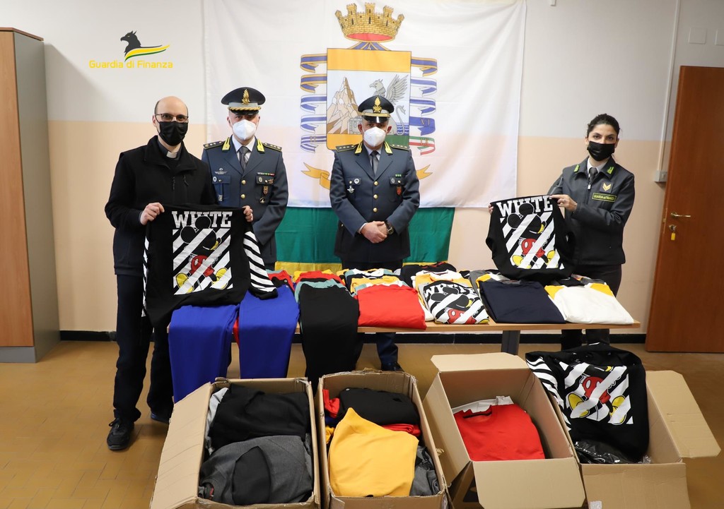 Pertanto, ottenuta l’autorizzazione da parte dell’Autorità Giudiziaria e dopo avere rimosso i falsi marchi, i capi di abbigliamento sono stati consegnati, durante un sobrio incontro presso i locali della Caserma aeroportuale, a Don Stefano Colombelli, Parroco della Parrocchia di San Francesco d’Assisi di Genova Sestri Ponente.